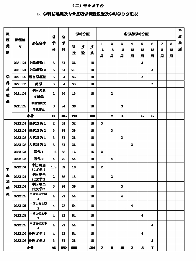八、课程设置及学时学分分配表