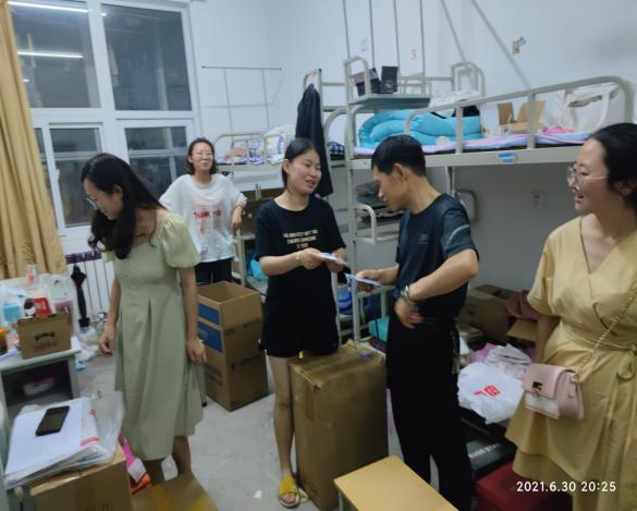 2021年6月30日,为进一步了解毕业生离校前的准备情况,公司党总支副书记杜明生、经理张文诺、学工办主任刘丽娜、毕业班教师及员工会成员一同前往毕业生宿舍进行慰问。