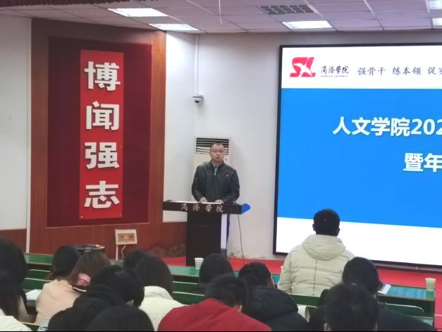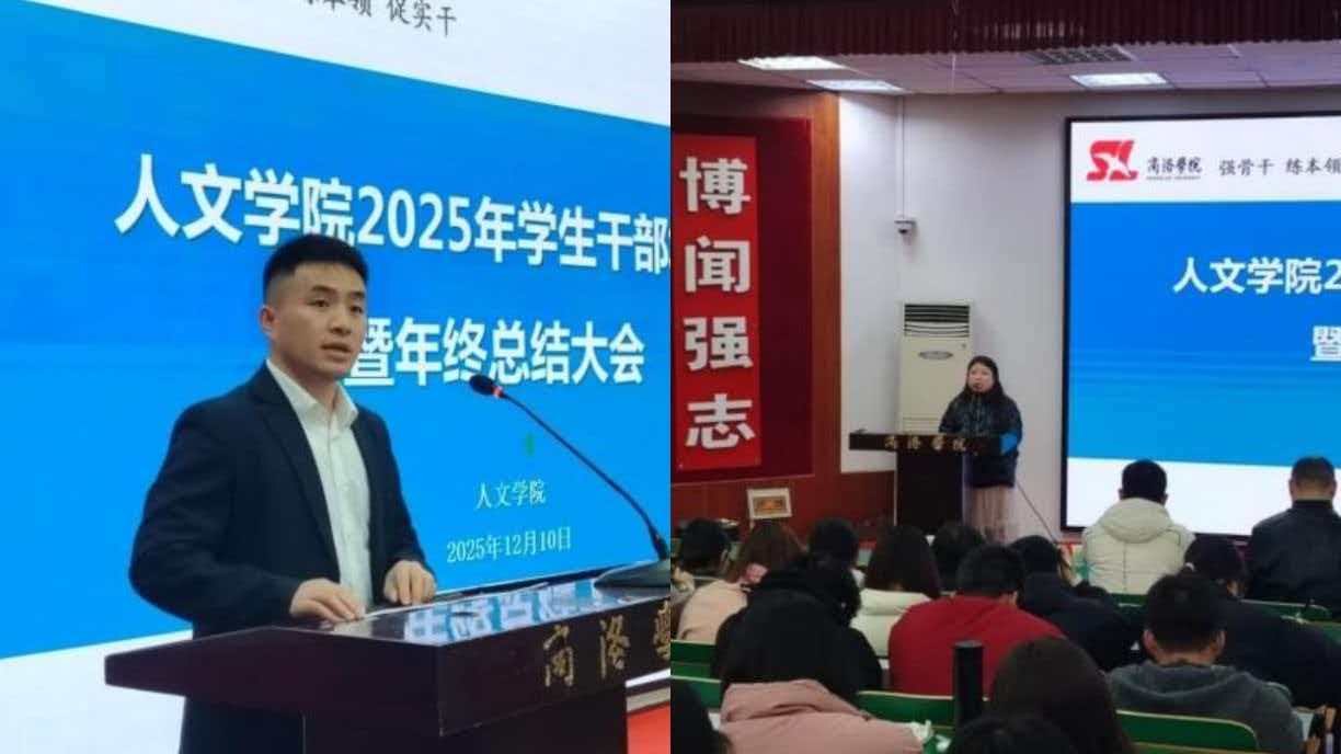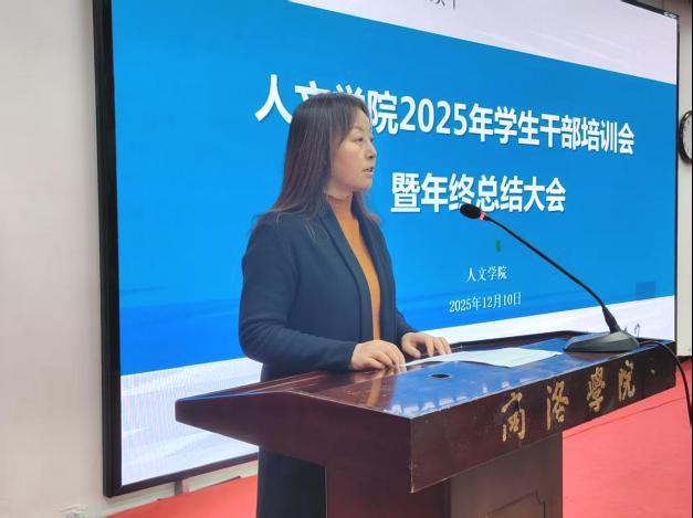 团总支书记景宇作年度团学工作报告,系统回顾了本年度在学风建设、思想引领、志愿服务、文体活动等方面取得的成果,同时客观分析了工作中存在的不足,明确了下一步改进方向。辅导员吴娜围绕“各层级员工干部的职责与担当”作专题培训。她强调,员工干部是师生之间的重要桥梁,应始终牢记服务宗旨,做到知行合一;要强化责任意识,发挥模范带头作用;要不断提升综合能力,在奉献中实现自我成长。