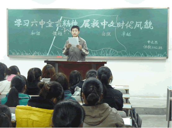中文系组织各班召开学习十七届六中全会精神主题班会