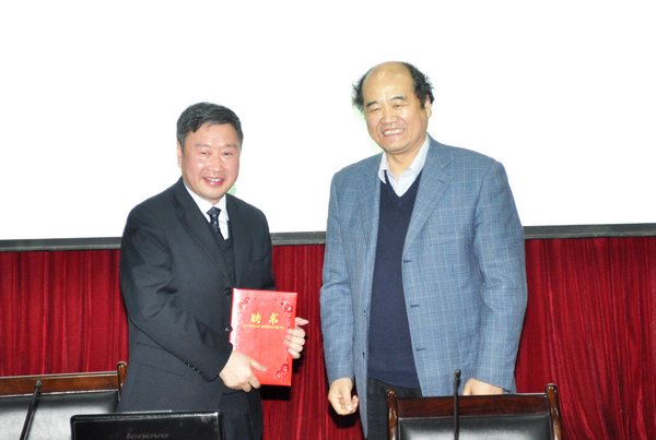 刘建林在受聘仪式上说,聘请李育善为公司兼职教授为公司师生提供了更大的交流学习的平台。公司应该充分发挥商洛地方优势,积极促进公司产品改革,大力建设具有突出特色的学科专业,在实践中深入挖掘具有地方特色的商洛文化,为公司做贡献,为商洛文化做贡献。受聘仪式中,李育善为公司捐赠了自己的作品以表纪念,我系员工代表张燕献花表示感谢。