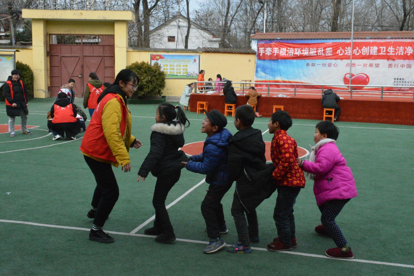 课间,志愿者们与小朋友们一起游戏玩耍,有的为姐姐们编辫子,有的坐在操场上吐露心声,“学为人师,行为世范”,志愿者们用行动践行了“师者”的精神与责任。