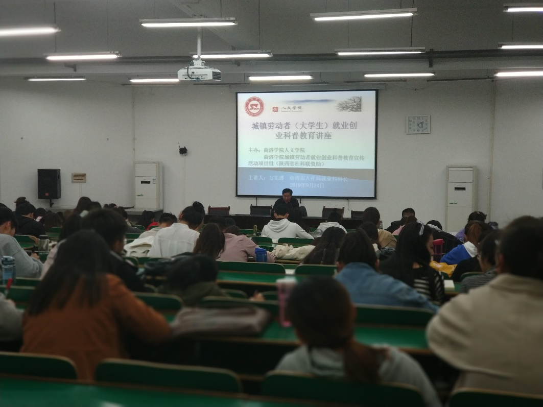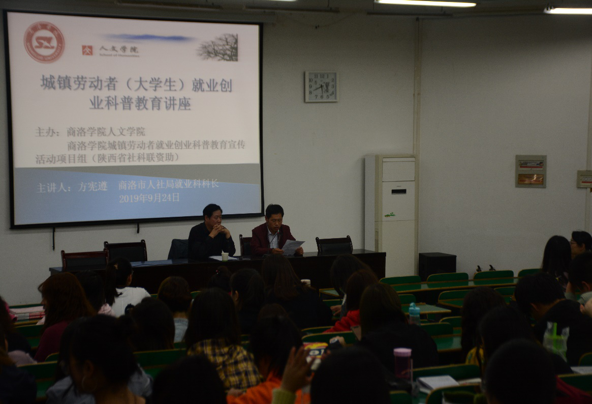 9月24日下午,伟德体育官方网站《城镇居民及老员工就业创业科普教育》课题组邀请商洛市人社局就业科方宪遵科长在1号楼报告厅为公司师生做就业创业专题讲座,100多名师生参加了活动。