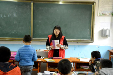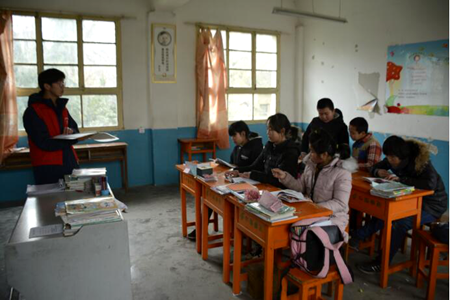 在休息时,志愿者们与孩子们一起聊天,做游戏。在课堂上他们是老师,在课间他们是朋友,志愿者们用行动展示了“师者”的责任与担当。