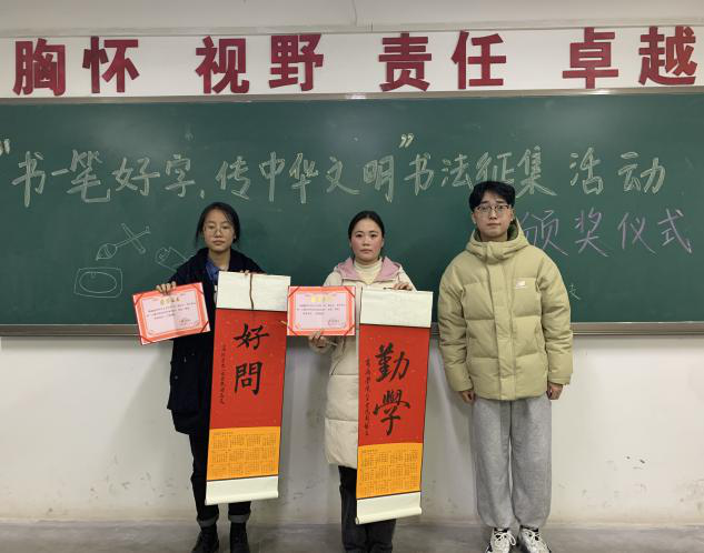 截止2020年11月28日下午五点,所有书法作品征集完毕,经过整理、评选。获奖情况如下:历史1901王旭、汉语1911刘一航荣获一等奖。历史1902郭函妮、汉语2011尚媛媛荣获二等奖。汉语1801王曼竹、汉语1903牟怡、汉语1903王妍丹、荣获二等奖。英语2002黄丽等同学荣获优秀奖。大家在对本次活动中获奖同学祝贺的同时,都普遍意识到写一手好字的重要性,并表示在今后学习生活中,会努力提高自己的书写能力,争做新时代文明老员工。