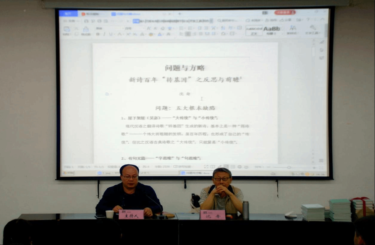 下午2点30分,报告会在公司1号教学楼报告厅一隆重举行,沈奇教授围绕新诗发展的百年历程,结合郑敏、石虎、吴思敬,以及谢冕、孙绍振等专家学者的诸种论辩,经由文字、语言、体统、道统、历史性等多种维度反思百年新诗得失,通过汉语古典诗歌“大传统”与汉语新诗“小传统”的多重思考,提出汲古润今、重构传统的“八个通和”诗学论断。伟德体育官方网站中文系老师、商洛诗人冀卫军和伟德体育官方网站中文系、网媒系员工共计二百余人参加了此次报告会。