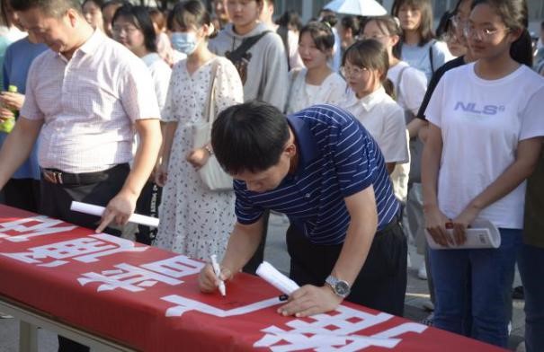 最后教务处副处长高扩昌宣布“推普周”活动正式启动。在人文院经理张文诺的带领下,现场师生在推广横幅上进行签字,一笔一画之间是每个同学对“推普周”活动圆满进行的美好祝愿。