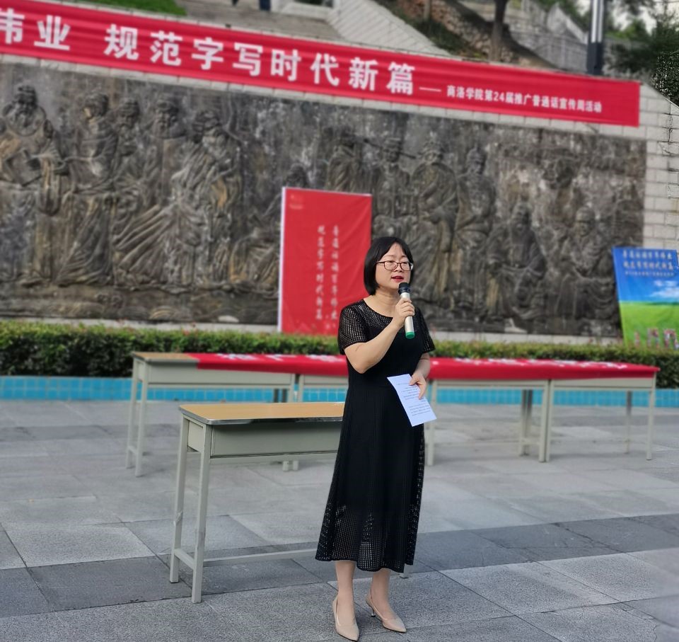 员工代表王滢在表态发言中回顾了中国共产党百年征程,指出中国语言与文字的重要性和存在的必要性,呼吁大家规范使用普通话,让规范语言之花开遍美丽的校园。