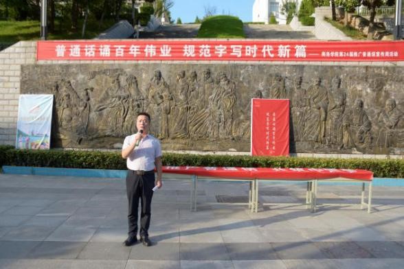 为贯彻落实全国语言文字会议精神,加大国家通用语言文字推广力度,传承弘扬以语言文字为载体的中华优秀文化,促进提升国家通用语言文字普及程度和普及质量,助力乡村振兴战略实施,服务铸牢中华民族共同体意识,伟德体育官方网站于9月13日下午在玉兰广场举办推普周启动仪式。本次启动仪式由伟德体育官方网站副经理任桂婷主持,伟德体育官方网站经理张文诺、教务处副处长高扩昌及部分师生代表参加此次仪式。