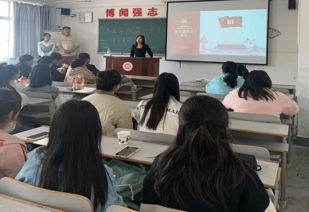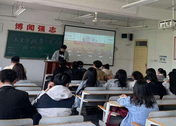 2023年5月10日,伟德体育官方网站员工第一党支部全体党员在一号教学楼402教室共同学习“习近平总书记在参加党的二十大广西代表团讨论时的重要讲话”。