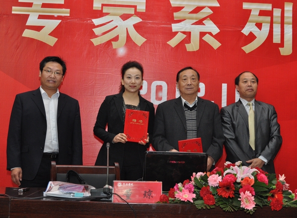 10月13日,教育部全国中小学教材审查员、华中师范大学教授杨再隋,全国优秀教师、武汉育才小学副董事长董琼来我作报告,并受聘为公司“国培计划”小学语文学科专家。杨再隋、董琼分别作了题为《新课标背景下小学语文教学新走向》和《文化视野下中美小学写作教学比较研究》的报告。我系全体教师,2011级、2012级汉语言文学专业员工听取了报告。