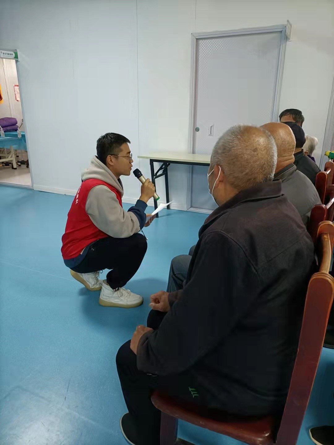 活动在一首《我的中国心》中拉开了序幕,伴随着婉转悠扬的歌声的响起,老人们一边轻轻打着拍子,一边在歌声中感受“倘若盛世将倾,深渊在侧,我辈当万死相赴”的拳拳爱国之心。“生如夏花般绚烂,逝如秋叶般静美。”诗朗诵《生如夏花》唤起了记忆里的珍贵瞬间和栖息在内心深处的精神家园。歌曲《唱支山歌给党听》表达了对党的歌颂与赞扬以及对美好生活的向往。相声《有话好好说》中,两位同学用精彩绝伦的表演将整场气氛推向高潮,老人们的欢声笑语与幽默的相声萦绕在每个角落。