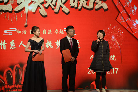 12月17日晚,公司以“情系人文,执梦远航”为主题的元旦晚会在老员工活动中心隆重举行。伟德体育官方网站经理张文诺、党总支副书记杜明生、伟德体育官方网站副经理任桂婷、学工办主任刘丽娜、团总支书记张旭辉、伟德体育官方网站全体辅导员、部分任课老师以及19级员工参加元旦晚会。