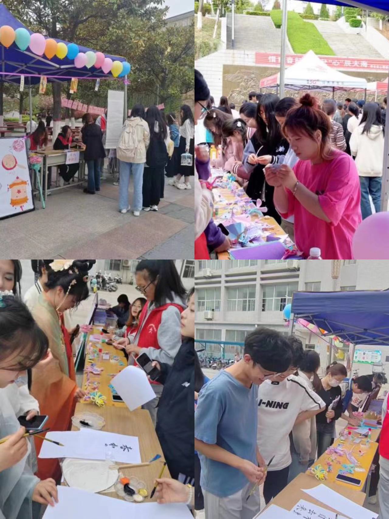 4月10日,宣讲团在北新街校区玉兰广场举办“寻找非遗传承人”活动。挖掘传统之美,传承非遗精髓。该活动分为剪纸体验区、扭扭棒体验区、书法体验书和粘土体验区四大主题体验版块,每个版块均有数名专业特长爱好者现场教学。广大青年学子兴致高昂,纷纷前来参与,跟随专业特长爱好者的讲解示范,体验剪纸之生动、书法之典雅、手工艺品之精美。