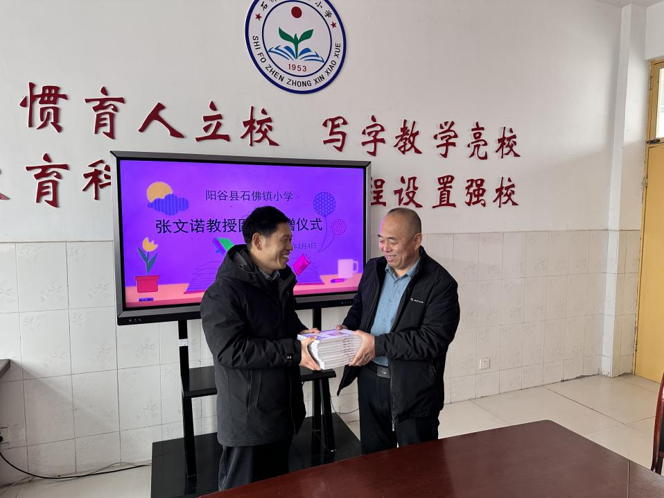 调研会结束后,双方还举行了张文诺教授向石佛镇中心小学的捐书仪式。