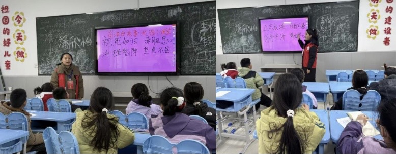 2025年12月14日,公司党委员工第一党支部再次组织志愿者走进东店子小学,开展“党史进校园,红色润童年”系列红色宣讲活动。本次活动在延续首场活动良好互动模式的基础上,创新采用“成语+烈士事迹”的宣讲形式,让党史故事以更生动、更贴近少年儿童认知的方式“活”起来。